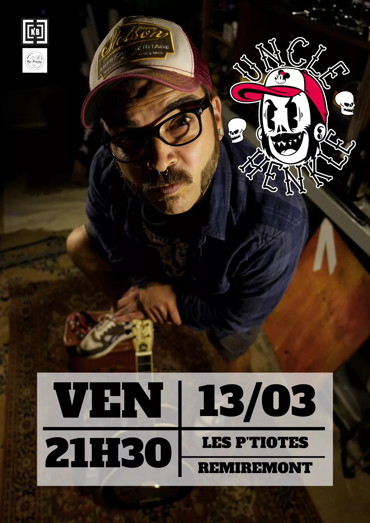 Uncle Henkle est un one man band blues/punk, reconnaissable à sa moustache, ses rouflaquettes et son dispositif minimal : une guitare et une valise. Seul sur scène, il délivre un blues rugueux et sans détour, tendu par une rythmique sèche et une attitude résolument punk.