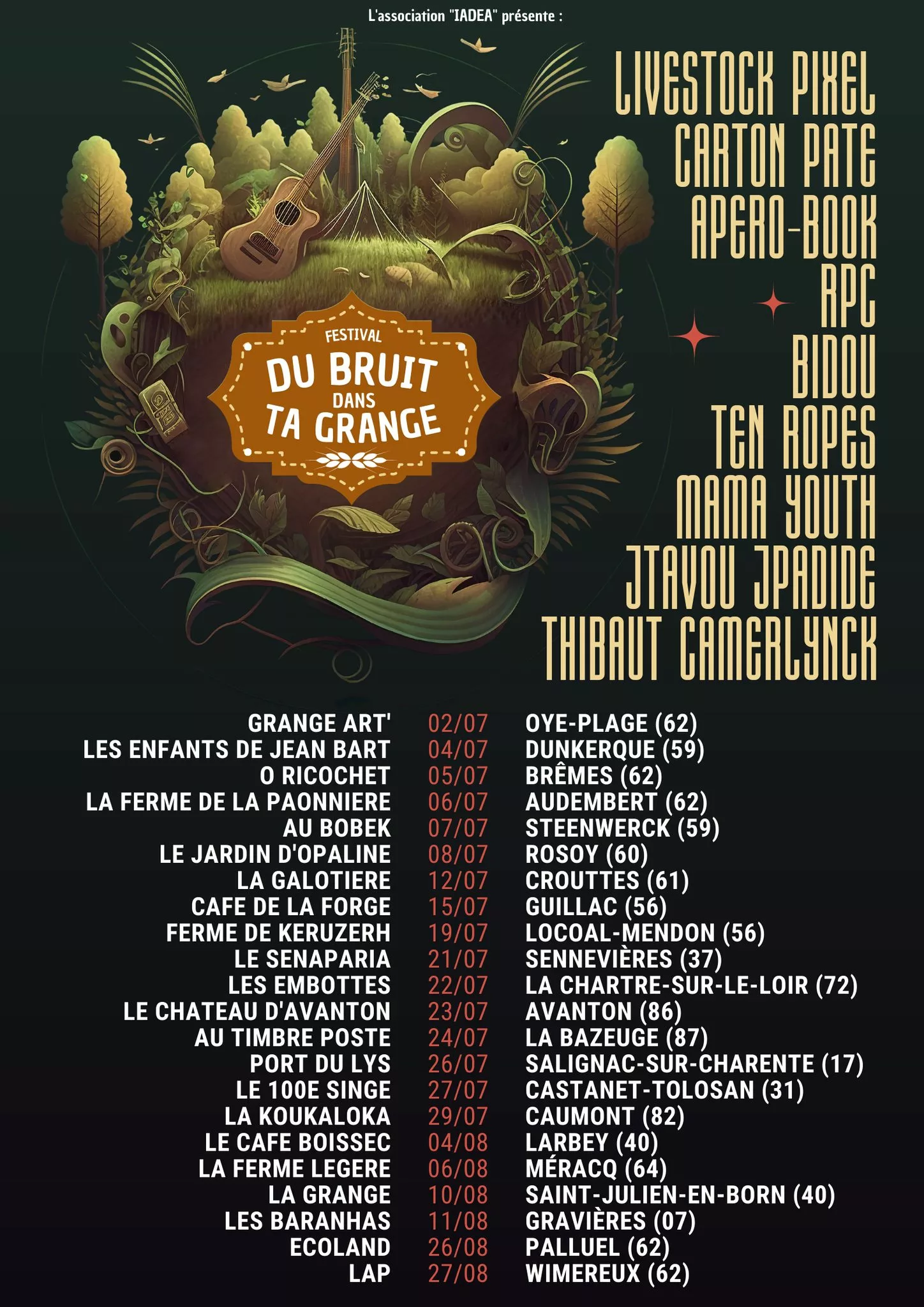 Born in Limousin in 2022 to create the pocket café-concert Au Timbré Posted, the association experienced three intense seasons before settling down in the Vosges in September 2024. Today, we are a collective of enthusiasts who defend current music and independent artists.